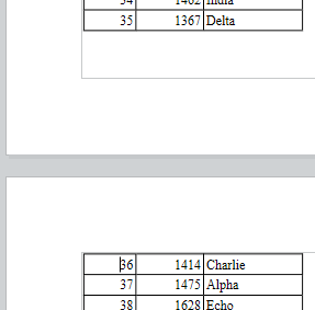 Tabelas só se separam entre linhas, e as linhasa também podem ser dividas. A paginação da tabela é atualizada dinamicamente se a orientação ou o número de coluna for modificado.