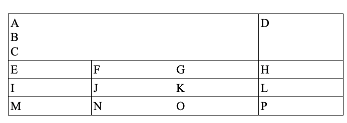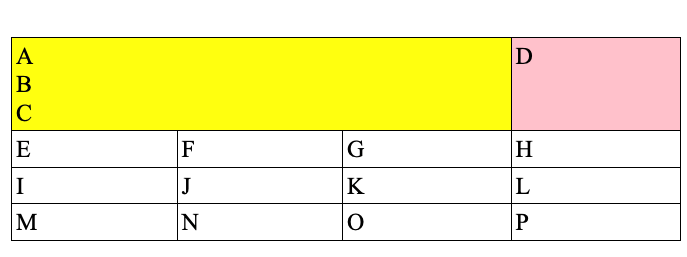 (*) Colunas não tem um equivalente em html. Em 4D Write Pro, um conjunto de colunas é na verdade um conjunto de células, oque significa que colunas tem a mesma prioridade que células.