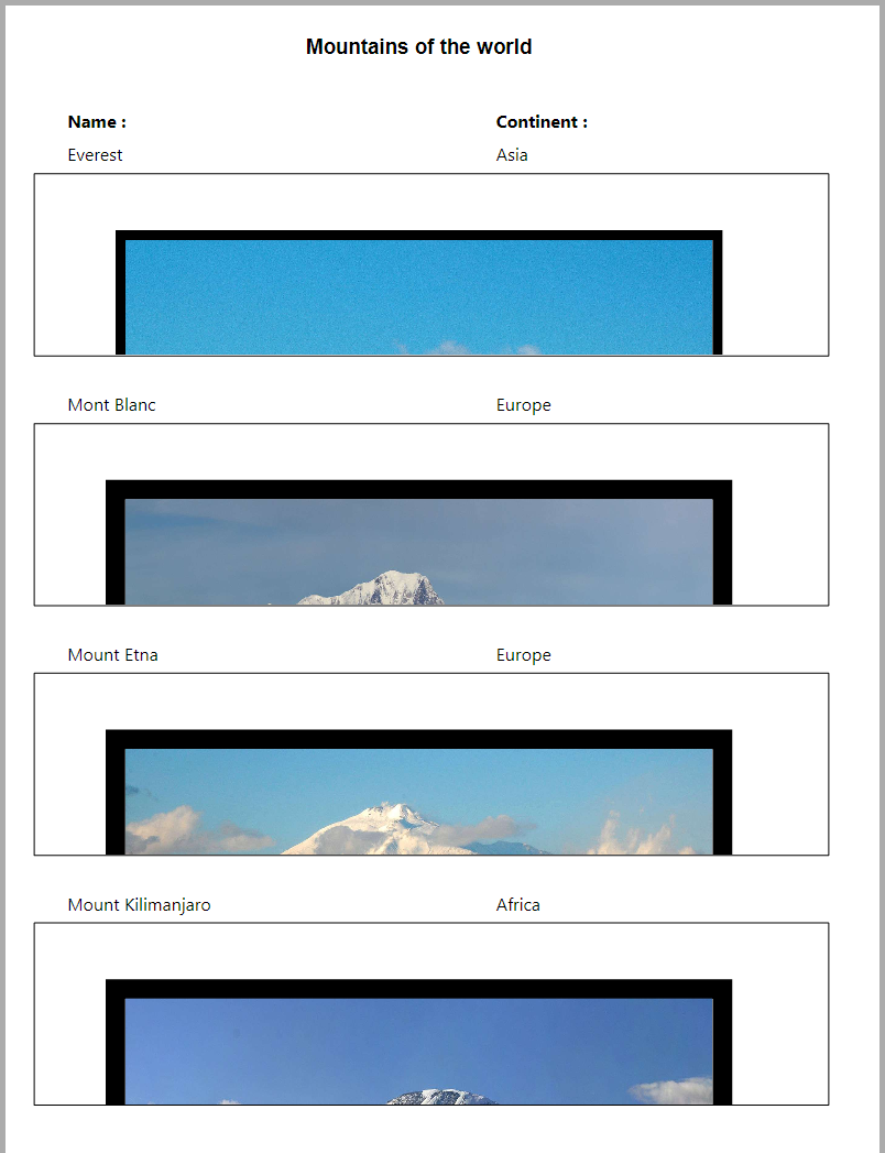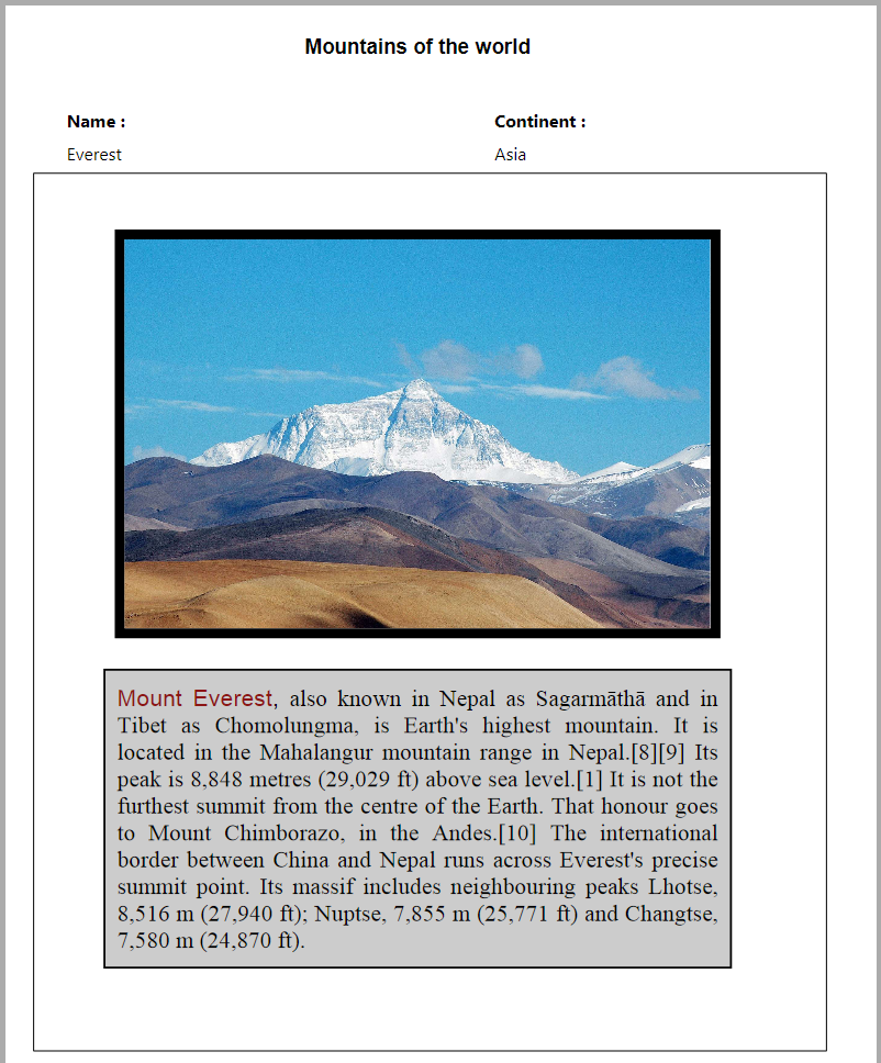 以下の例は、デフォルト出力フォームに埋め込まれた4D Write Proエリアにおける印刷時可変オプションの効果を示したものです。ここでは以下のコードが実行されています: