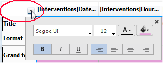4D aplica os parâmetros ao texto,dados ou cálculos incluidos na área selecionada Pode definir parâmetros para todas as áreas do relatório selecionando o botão emergente na célula superior esquerda do design de relatório: