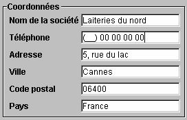Le filtre de saisie des numéros de téléphone (&9(##)-##-##-##-##) utilise des parenthèses et un tiret comme caractères ignorés. Après la saisie d’un caractère situé avant un caractère ignoré, le point d’insertion se déplace automatiquement à l’emplacement qui suit le caractère ignoré.