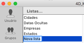 4D cria uma nova lista chamada por padrão Nova Lista X.