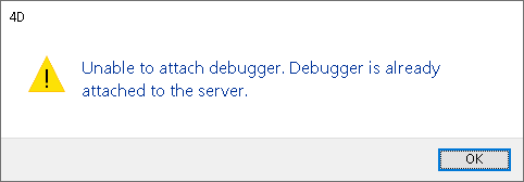 While the debugger is already attached to a remote 4D or to 4D Server (default), no other machine can attach the debugger.