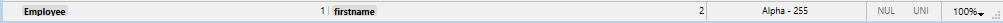 La parte inferior de la ventana del editor es una barra de información que muestra los datos en función del área sobre la cual se pasa el cursor: tabla, campo o relación.