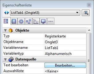 • Der Inhalt der Eigenschaftenliste ist vom Kontext abhängig. Ist z.B. für ein Objekt oder ein Datenfeld die Eigenschaft Eingebbar nicht gewählt, verschwinden alle Eigenschaften zur Eingabekontrolle (Zwingend, Eingabefilter, Auswahlliste) aus der Liste.