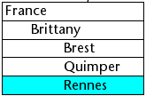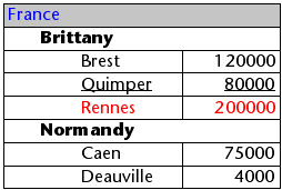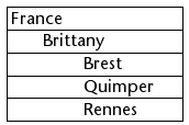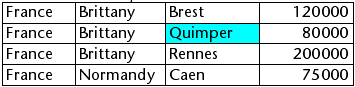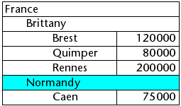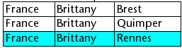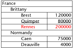 If these arrays are represented hierarchically, the row "Quimper" will not be displayed on the second row, but on the fourth, because of the two break rows that are added: