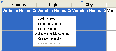 • The variables of the columns are used to specify the hierarchy. They replace any variables already specified.