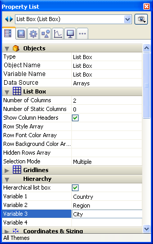 • The "Hierarchical list box" option is checked for the object in the Property List.