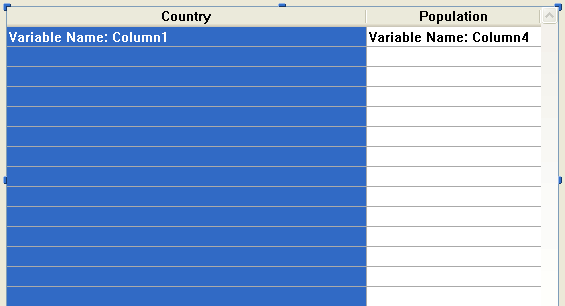 Example: given a list box whose first columns contain Country, Region, City and Population. When Country, Region and City are selected (see illustration above), if you choose Create hierarchy in the context menu, a three-level hierarchy is created in the first column, columns 2 and 3 are removed and the Population column becomes the second: