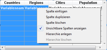 Die Variablen der Spalten werden zum Definieren der Hierarchie verwendet. Sie ersetzen alle bereits deklarierten Variablen.