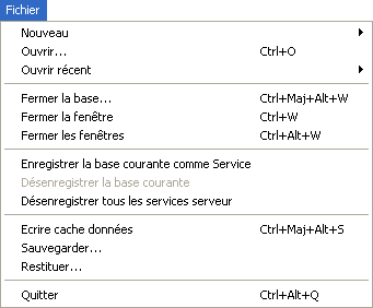 Cette commande hiérarchique donne accès à un sous-menu permettant de créer une base de données ou un nouveau fichier de données sur le poste serveur.