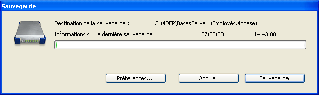 Cette commande permet de déclencher une sauvegarde de la base à tout instant. Lorsque vous sélectionnez cette commande, la boîte de dialogue suivante apparaît :