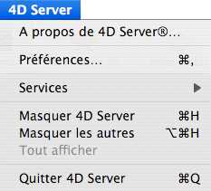 Note : Sous Mac OS X, la commande Quitter se trouve dans le menu 4D Server (menu application).