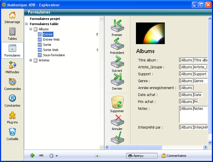 Les formulaires projet sont des formulaires autonomes, non rattachés à des tables. Ces formulaires sont particulièrement utiles dans le cadre du développement d’interfaces et de composants.