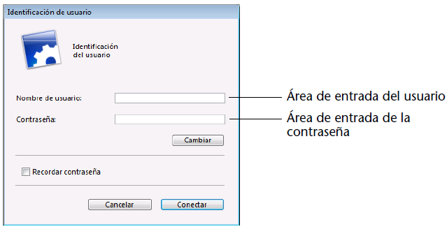 • Por defecto, se muestra la caja de diálogo Identificación de usuario: