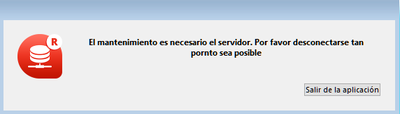Una ventana idéntica aparece en cada equipo cliente 4D. Esta ventana se repite o actualiza en cada máquina cliente cada 20 segundos o menos, con el fin de obligarlos a salir. Cuando se cumple el tiempo límite, el servidor se cierra, aunque haya máquinas cliente aún conectadas.