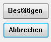 • Standardschaltflächen: Eine Standardschaltfläche sieht wie eine gängige Schaltfläche aus, nur die Darstellung ist anders. Dies zeigt dem Benutzer, dass die Schaltfläche die empfohlene Wahl ist. Der Unterschied hängt vom Betriebssystem ab. Nachfolgende Darstellung vergleicht eine Schaltfläche mit einer Standardschaltfläche.