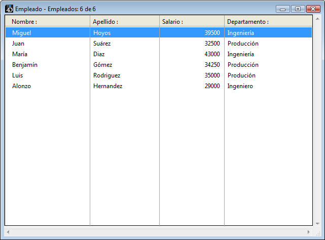 Elija los formularios tabla y despliegue la tabla Empleados:
