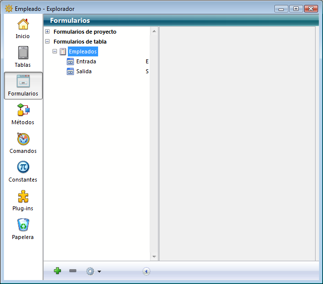 En la primera máquina, elija Explorador> Formularios en el menú Diseño. Aparece la ventana del Explorador.
