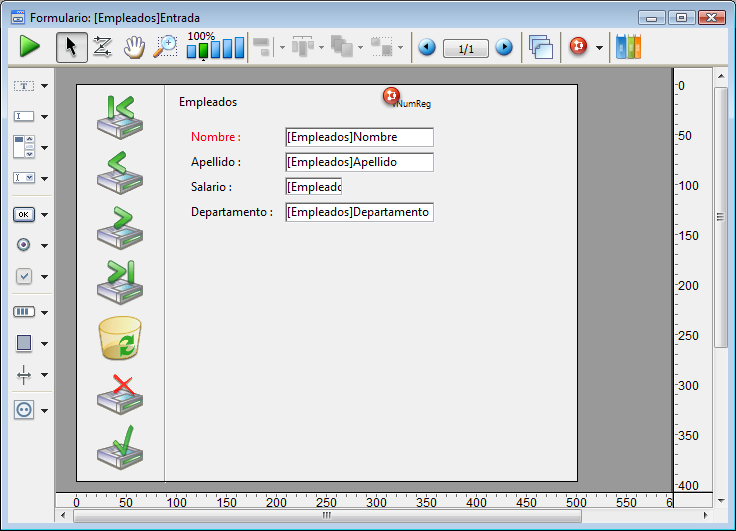 Haga doble clic en el formulario de entrada. Aparece el editor de formularios, con el formulario de entrada: