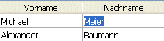 Während der Ausführung können Sie in Listboxen Daten als Liste anzeigen und eingeben. Um eine Zelle editierbar zu machen (wenn die Dateneingabe für die Spalte erlaubt ist), doppelklicken Sie auf den Wert: