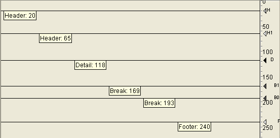 The control lines cannot be dragged out of order. For example, if you attempt to drag a Footer control line higher than a Break control line, the drag operation automatically stops when the Footer marker reaches the Break marker.