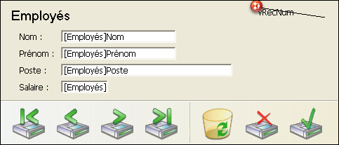 Les formulaires projet peuvent contenir les mêmes types d’objets que les formulaires table, y compris des champs. Lorsque des champs sont utilisés, le formulaire projet stocke le numéro de la table et du champ. En cas de copie du formulaire d’une base à une autre ou dans le cadre d’un composant, les références sont copiées. La table et le champ utilisés sont ceux de la base d’arrivée. En cas d’incompatibilité (table inexistante, type de champ incorrect...), le formulaire ne fonctionnera pas correctement. Comme les formulaires projet sont principalement destinés à être utilisés dans le contexte de la commande DIALOGUE, les actions standard relatives à la gestion des enregistrements (Enregistrement suivant, Supprimer enregistrement, etc.) ne sont pas proposées par défaut dans l’éditeur ni dans l’assistant de création de formulaire. Vous devez gérer via les commandes du langage l’affichage et les éventuelles modifications des données des enregistrements. En revanche, lorsque les formulaires projet sont utilisés comme formulaires hérités par des formulaires table, l’usage des mécanismes automatiques de gestion des enregistrements est possible.