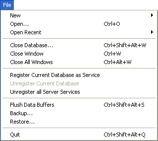 Este comando hierárquico contém submenus que permitem criar um banco de dados ou um novo arquivo de dados na máquina servidor.