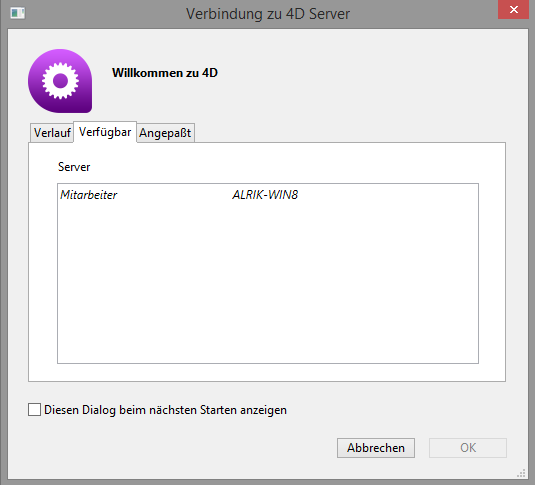 Anmeldung an eine 4D Server Datenbank