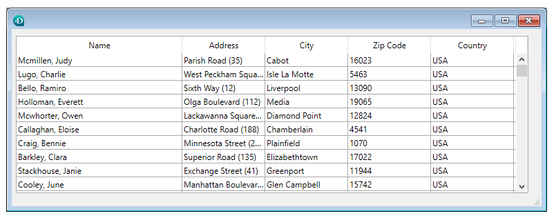 A nível da interface de usuário: quando 4D mostra uma lista de registros, o formulário utilizado exibe os registros que desempenham um papel na arquitetura cliente/servidor. Por exemplo, a seguinte imagem mostra o resultado de um pedido na tabela [Clientes].
