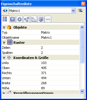 Hinweis zur Kompatibilität: Formularobjekte vom Typ Matrix erfüllen nicht mehr die Anforderungen moderner Oberflächen. Sie sind ab 4D v17 R3 veraltet und sollten nicht mehr verwendet werden. Dynamische Formulare unterstützen sie nicht.