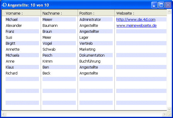4D zeigt im Listenmodus bei Bedarf nach dem letzten Datensatz Leerzeilen an, so dass das gesamte Fenster ausgefüllt ist: