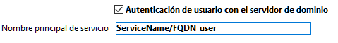 Esta opción declara el SPN tal como se establece en la configuración Active Directory. Un nombre principal de servicio es un identificador único de una instancia de servicio. Los SPNs son utilizados por la autenticación Kerberos para asociar una instancia de servicio con una cuenta de servicio de inicio de sesión. Esto permite que una aplicación cliente solicite que el servicio autentique una cuenta incluso si el cliente no tiene el nombre de la cuenta. Para más información, por favor consultela página SPN en el sitio web de msdn.