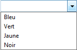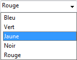 Par exemple, soit une liste de choix associée à la combo box "Couleur" et contenant "Bleu, Vert, Jaune, Noir". Si l’utilisateur saisit "Rouge" et si l’option Insertion automatique est cochée, la valeur "Rouge" sera automatiquement ajoutée à la liste en mémoire :