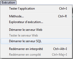 • Manuellement, via la commande Démarrer le serveur SQL dans le menu Exécution de 4D :