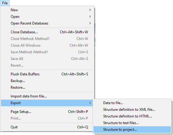 Seleccione Archivo > Exportar > Estructura para proyecto.