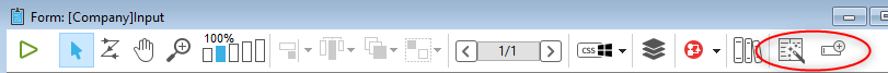 En la arquitectura de proyectos, el editor de formularios propone dos funciones de asistente, disponibles a través de los botones situados en el extremo derecho de la barra de herramientas: