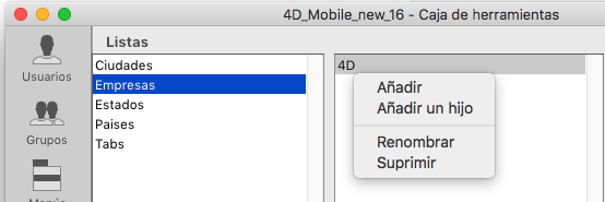 4D crea una nueva lista llamada por defecto Nueva Lista.