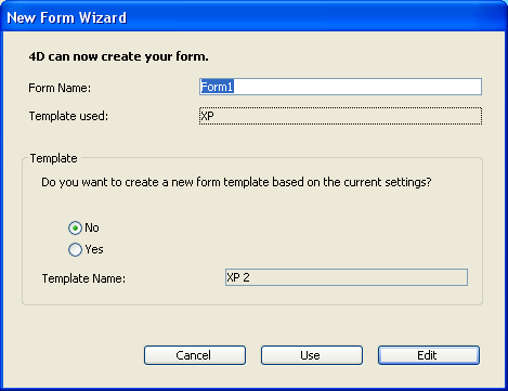 Choose a template for the form. The template controls several aspects of the form appearance, including font attributes, field label placement, the design of decorative rectangles surrounding fields, and platform interface. 4D ships with several templates and you can use the Form Wizard to add custom templates to this list. For more information about adding custom templates, see “Creating a form template” at the end of this section.