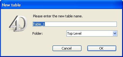 You can create tables at any time. 4D names the first table [Table_1] and then names additional tables sequentially, up to [Table_32767]. You can rename the tables to suit your purposes.
