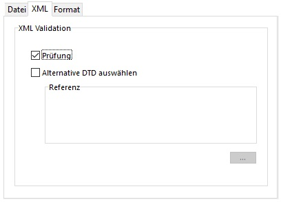 Ist das DTD des importierten Dokuments nicht im Dokument selbst enthalten, sondern in einer separaten Datei, oder wollen Sie das Dokument über eine andere DTD bestätigen, wählen Sie die Option Alternative DTD auswählen und geben über die Schaltfläche [...] die Datei mit der gewünschten DTD an.
