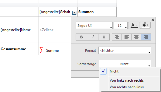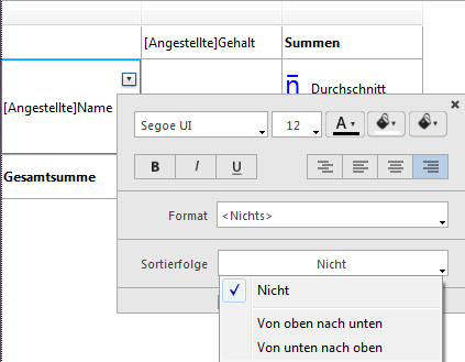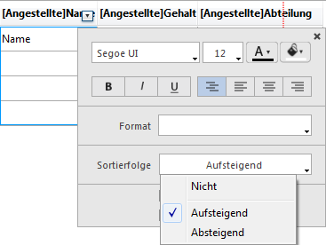 Sie können Spalten mit Datenfeld oder mit Formel sortieren.