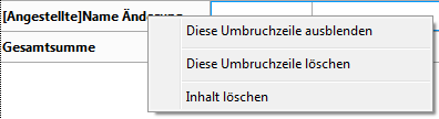 Um den Abstand für eine Zeile mit Zwischensumme zu setzen, wählen Sie diese Zeile aus und öffnen Sie mit rechter Maustaste das zugeordnete Kontextfenster (eingebundener Bereich) bzw. das Kontextmenü. Es gibt folgende Optionen: