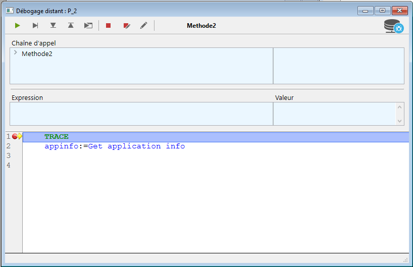 Par défaut, le débogueur n'est pas associé à un 4D distant :