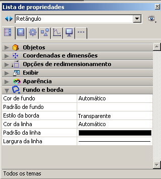 Todos os objetos em um formulário têm propriedades para definir sua aparência, sua visualização, e seu redimensionamento no modo Aplicação. Essas propriedades estão disponíveis usando a Lista de propriedades (ver a seção Editor de formulários).