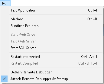 • En el servidor (si no está  sin cabeza), esta opción se denomina Adjuntar depurador al inicio. Cuando se inicia el servidor, se adjunta automáticamente el depurador (por defecto):