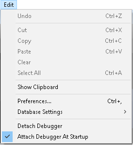 - Puede volver a asociar el depurador al servidor seleccionando Adjuntar el depurador en el menú Edición (si no está asociado a un 4D remoto, ver Solicitudes de adjuntos rechazadas).