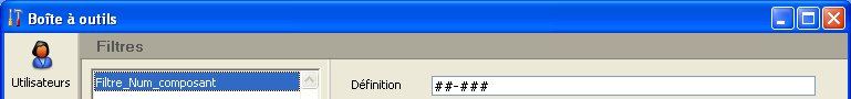 • Autre exemple : si vous souhaitez créer un filtre de saisie pour un numéro de composant respectant le format XA-654-1, vous pouvez utiliser le filtre suivant :