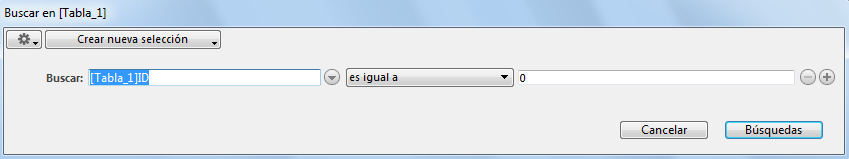 • Crear nueva selección (acción por defecto): 4D busca en todos los registros de las tablas y muestra los registros encontrados en reemplazo de la selección actual original.