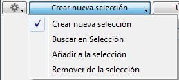 7. Elija el destino de la búsqueda utilizando el menú de acción en la selección: Crear nueva selección, Buscar en selección, Añadir a selección, Eliminar de selección (ver sección anterior).